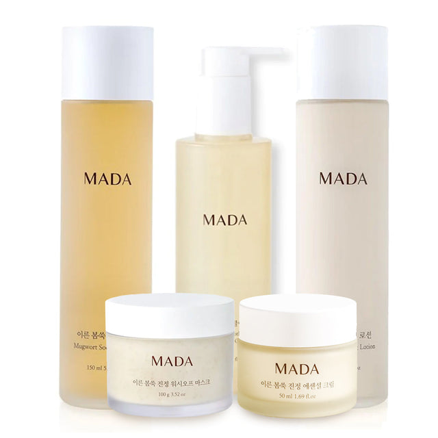 *HOT DEAL* Limited Edition MADA Early Spring Mugwort Soothing Care Set - Lotion + Toner + Essential Cream + Wash-Off Mask + Cleansing Oil is backordered and will ship as soon as it is back in stock.